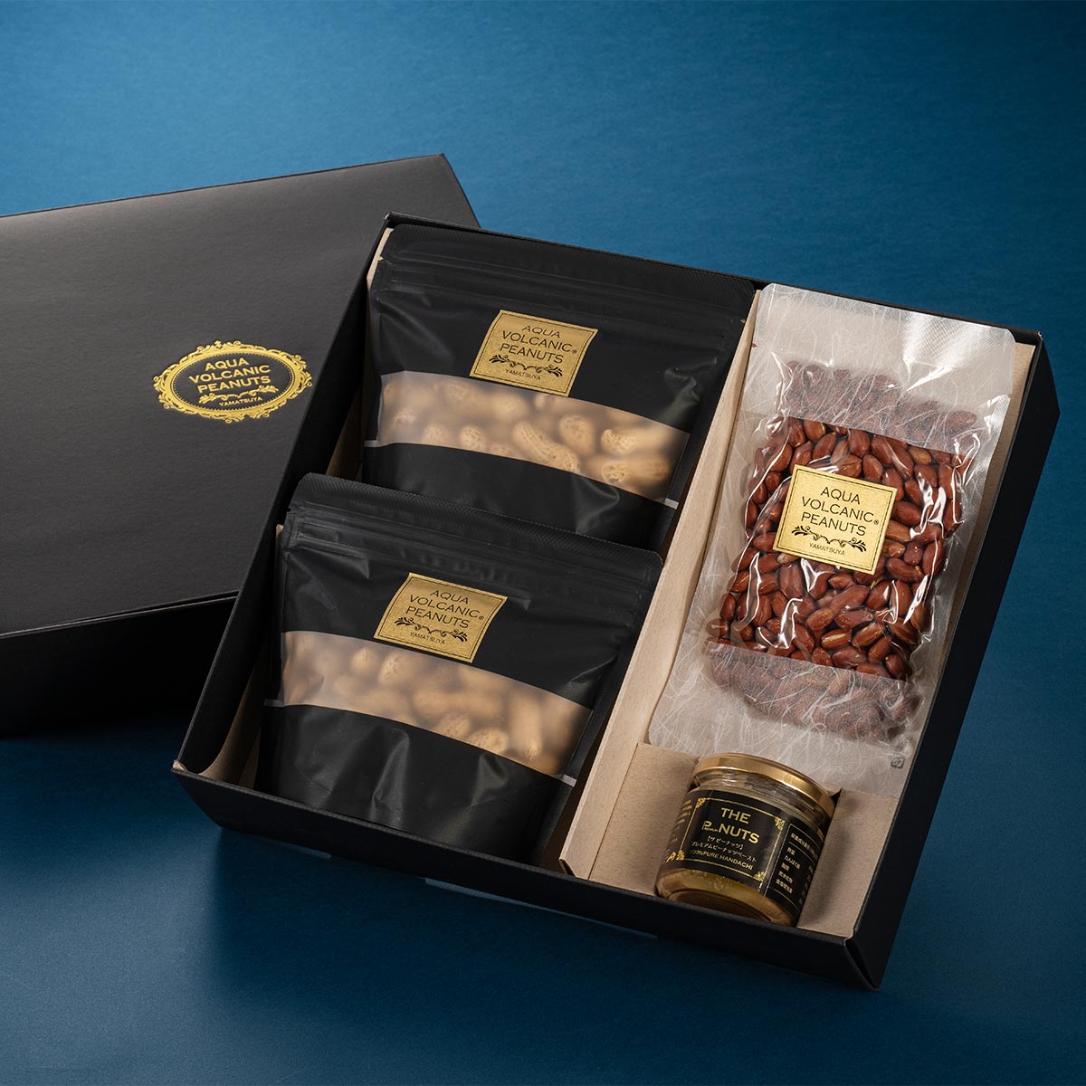 AQUA VOLCANIC® PEANUTSのロゴ入りギフトケースに入れて包装してお届けいたします。